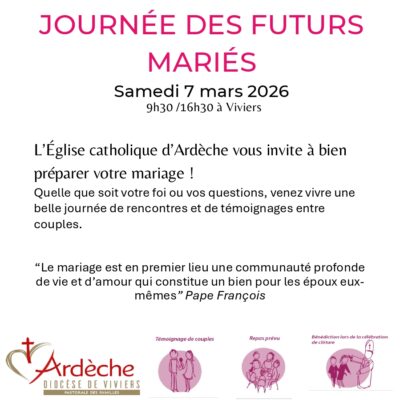 Préparez votre mariage avec l’Église catholique d’Ardèche !Le samedi 7 mars 2026, de 9h30 à 16h30, la Maison [...]