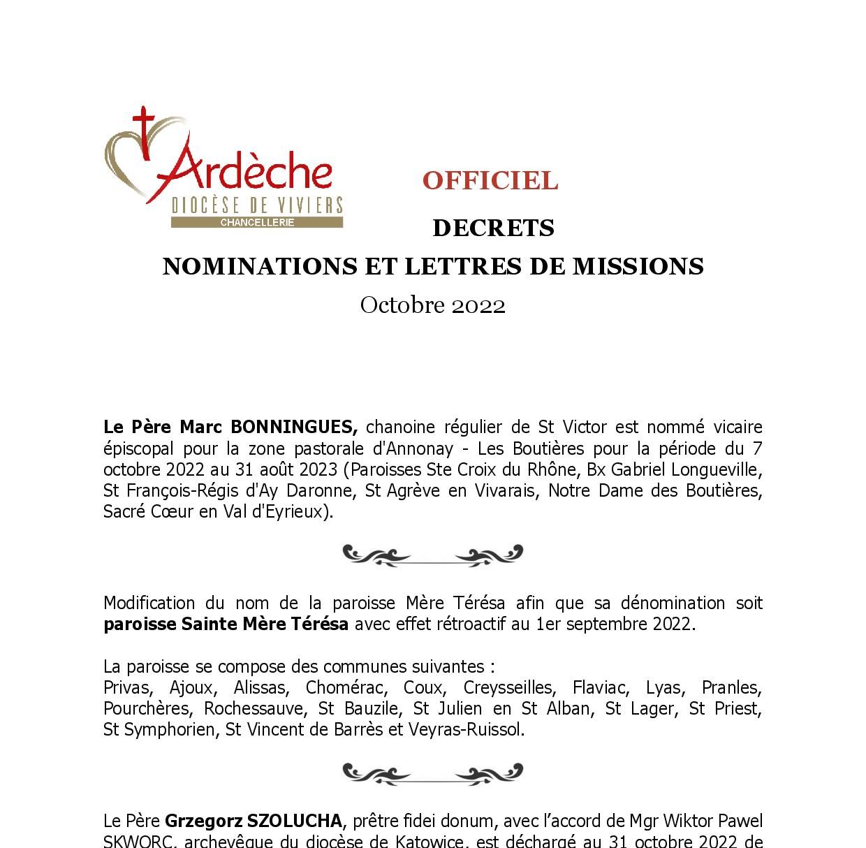 Décrets, nominations et lettres de mission – Octobre 2022 Pour télécharger le document en PDF, cliquez ICI Partager :Cliquez pour partager sur Facebook(ouvre dans une nouvelle fenêtre)Cliquer pour imprimer(ouvre dans une nouvelle fenêtre) Cécilia Grand2022-11-18T16:29:00+01:00 Partagez cet article sur votre réseau ! FacebookTwitterLinkedInWhatsAppPinterestEmail