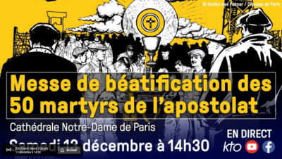 Pour suivre la célébration en direct, connectez-vous le samedi 13 décembre à 14h30 sur ce lien : https://www.ktotv.com/video/00458601/beatification-des-martyrs-de-lapostolat-catholique-a-notre-dame-de-paris